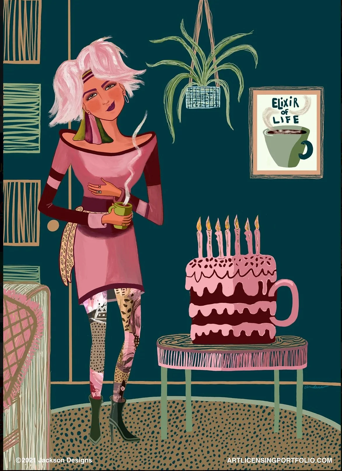 Handpainted wine glasses and cake plates to be created into collections for tabletop market.